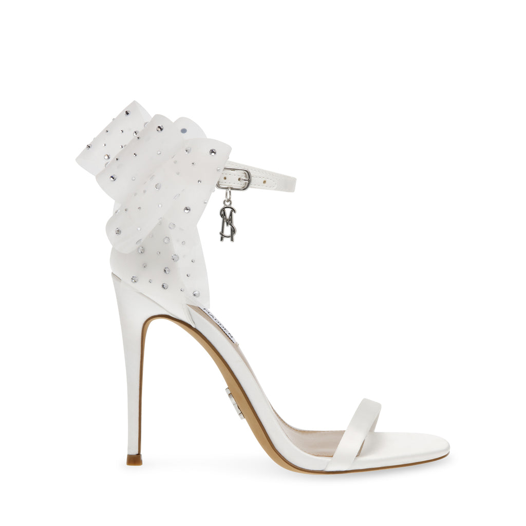 The NIKOLE sandal features a stiletto heel and a round toe, giving the design sleek lines that contrast with the voluminous bow at the back of the ankle.