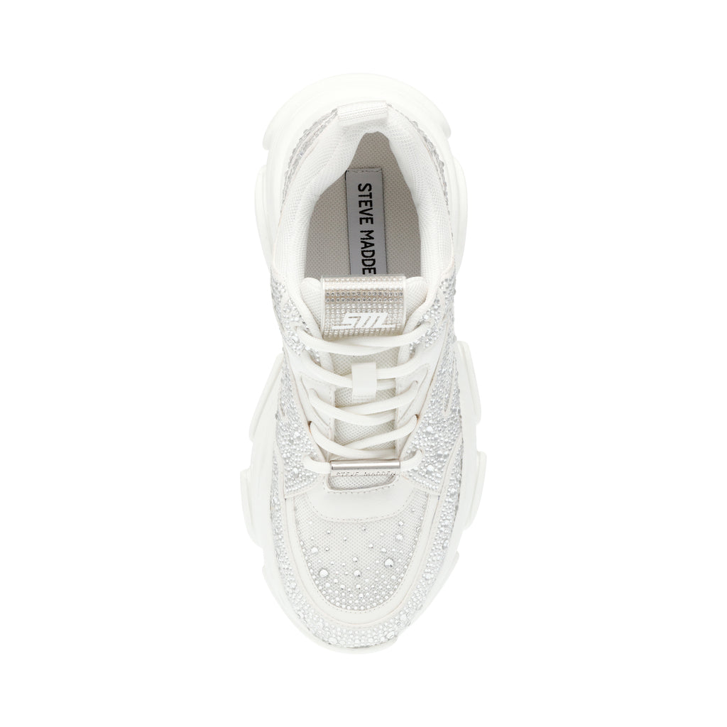 The hottest sneaker of the season now covered with rhinestones; PRIVY. This dad sneaker has a monochrome look and extra chunky sole. Wear this eye-catcher with everything from loose jeans to midi skirts.